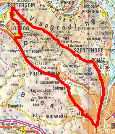 A Pilisben: Budapest - Budakalász - Pomáz - Kiskovácsi - Pilisszentkereszt - Dobogókő - Pilisszentkereszt - Pilisszántó - Pilisvörösvár - Csobánka - Pomáz - Budakalász - Budapest (105 km)