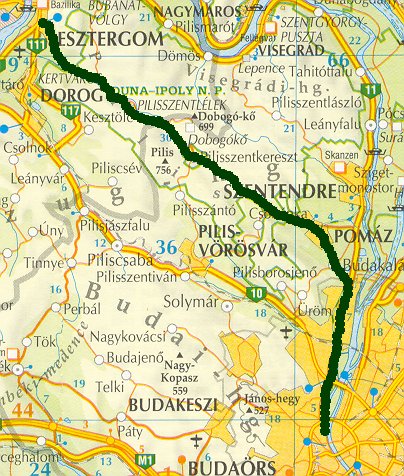 Át a Pilisen és a Visegrádi-hegységen Esztergomig: Budapest - Budakalász - Pomáz - Pilisszentkereszt - Két-bükkfa-nyereg - (Dobogókő) - (Pilisszentlélek) - Budapest (60 km)