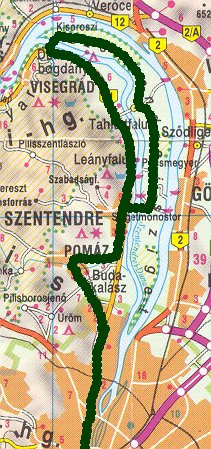 Szentendrei sziget: Budapest - Budakalász - Pomáz - Szentendre - Szigetmonostor - Pócsmegyer - Tahitótfalu - Kisoroszi - Dunabogdány - Tahitótfalu - Leányfalu - Szentendre - Budakalász - Budapest (80 km)